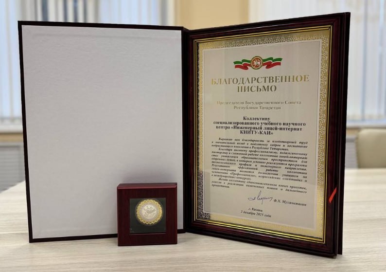 СУНЦ КНИТУ-КАИ получил Благодарность Госсовета РТ!