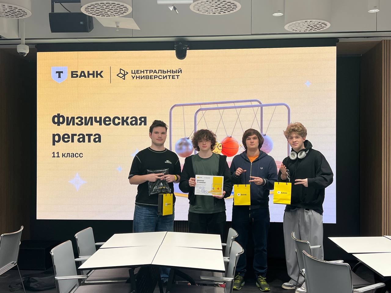6 декабря прошла «Физическая регата» — конкурс, организованный Т-Банком и Центральным университетом для учеников 11-х классов. В финальный очный тур были отобраны 33 команды. СУНЦ МГУ представляли две команды, сформированные из учащихся 11Г и 11Е классов.